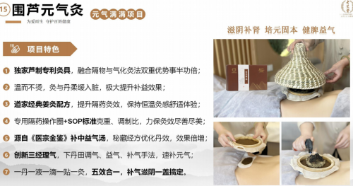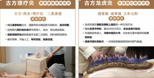 项目不是 “跟风款”,而是 “丹方 + 道灸 + 科技” 的独创组合:丹方源自古籍,道灸传承古法,科技辅助操作。“龙虎灸” 能解决肩颈、腰背问题,男女老少都适合;“古方伊元灸” 专攻女性宫寒、气血问题,精准抓牢女性客群。项目覆盖广、效果好,再加上操作简单(新手 3 天就能会),让加盟商不用愁 “没客做”“做不好”。