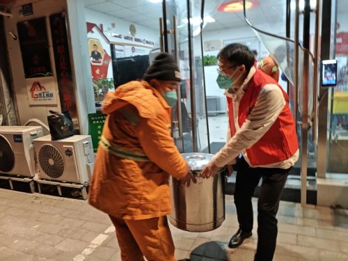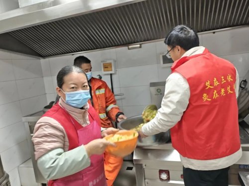 考虑到部分孤寡老人行动不便,无法亲自到驿站领取早餐,宣誓结束后,阔哥带领志愿者们冒着大雪,开启了 “送饭上门” 服务。他们踏着没过脚踝的积雪,深一脚浅一脚地穿梭在各个小区,有的老人居住的小区位置偏远,需要走很远的路才能到达,但没有人抱怨,心中只有一个念头:尽早把温热的粥菜送到老人手中。