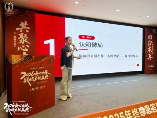 谢明峻总监率先带来持续盈利破局之道,核心聚焦盈利底层逻辑、大单品战略与超强落地执行力。业绩难做不可怕,固守旧思维、拒绝新路径才是关键。门店盈利需“先算后战”,以数据优化人、客、床位配比,摒弃低效产品矩阵,用“钻井四步法”聚焦大单品,以“聚焦、深度、价值”贯穿引流-转化-升单全链路。业绩需规划,利润靠设计,借助三九灸等四大营销战役可快速落地成果。2026年将以“12个月生命养护”为主线,通过月度主题营销+会员分层运营双轮驱动,搭配老带新双向激励机制,让老客有面子、新客有甜头,总部全程赋能,实现幸福经营与持续盈利的双重目标。