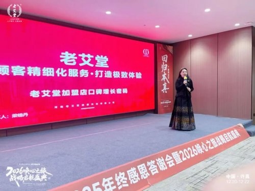 优秀加盟商们毫无保留的分享成为盛典最珍贵的财富。江苏尹山湖店孙院长聚焦新客留存,分享“让新顾客感受到被重视、被关心”的服务理念,拆解低门槛复购引导技巧;上海金山店梁院长深耕精细化服务,揭秘“服务从真诚链接开始”的经营哲学,分享首次进店大单成交的核心秘诀;辽宁丹东店李院长强调“专业是根基,客情是翅膀”,呼吁大家抱团取暖、合力前行;武汉陈峰院长带来暖心创业故事,“为爱入行开办艾灸馆”,凭借品牌赋能与专业立本,实现40余天火速回本的亮眼成绩,用实战成果印证老艾堂幸福经营模式的可行性。