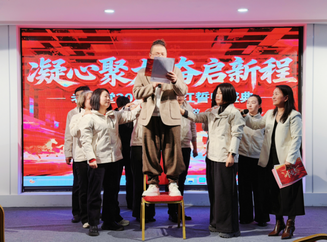 团队宣誓・共赴目标:加盟板块、渠道板块、直营板块、本地生活、新媒体等团队的家人们依次登台,举起右拳,庄严宣誓。字字铿锵,是心底的赤诚;句句坚定,是前行的承诺。2026年度的目标清晰可见,开门红第一季度的使命牢记心间,响彻会场的誓词,是对过往的温柔回望,更是对未来的郑重奔赴,彰显着全体老艾堂人并肩作战、决胜新岁的决心与底气。
