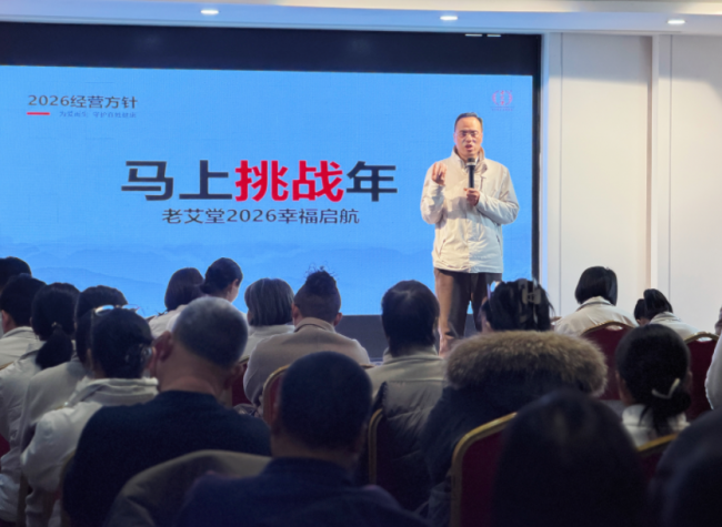 靳总在开年规划解读中,携新岁期许发表开年寄语,明确老艾堂 2026 幸福经营计划为「马上挑战年」,确立「稳健・务实・高效・标准」的经营方针,严格遵循「购物胖东来,健康老艾堂」的发展理念,倡导全体家人以勇气、担当、脚踏实地的姿态奋进前行。